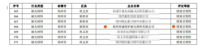 10月26日,在河南省生態環境廳印發了《關于發布重污染天氣重點行業績效評級結果的公告》(〔2020〕年11號)中,鄭州榮盛窯爐耐火材料有限公司獲評“績效引領性企業”,這是繼公司榮獲“高新技術企業”、省級“科技型中小企業”后,再添喜訊。