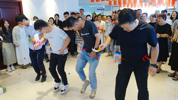 接著近半年入職的小伙伴們輪流登臺做自我介紹,并分隊開始進行丟沙包。這邊用力擲出,那邊左閃右避,不時做出高難度跳躍動作。觀眾們的加油聲高過一陣又一陣,現場洋溢著青春活力氛圍。